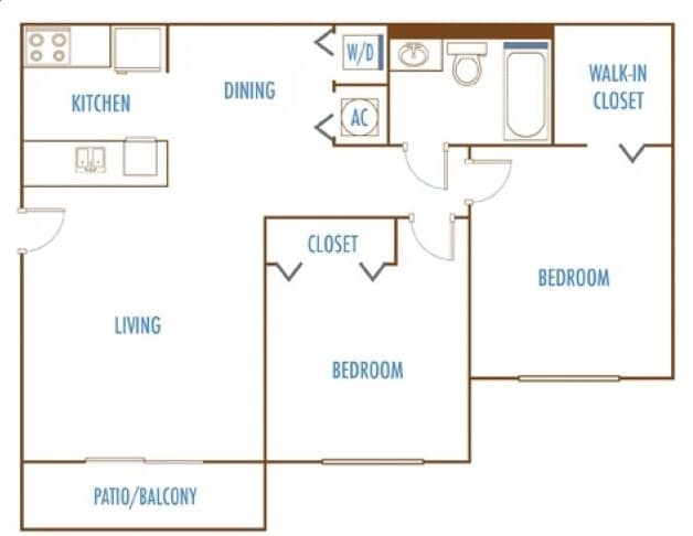 Modelo de apartamento: The Tigrisoma1 Dormitorio, 1 Baño, 797 sq ftNo DisponibleThe Tigrisoma - Plano 1 2 Dormitorios
