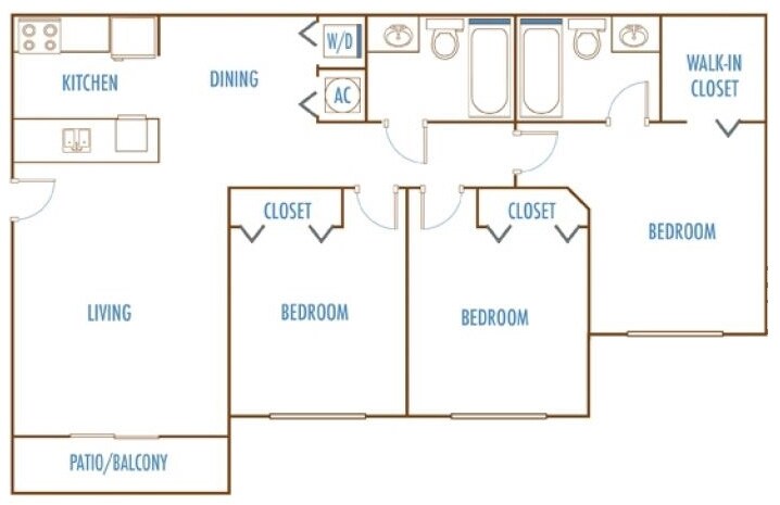 Modelo de apartamento: The Egretta2 Dormitorios, 1 Baño, 952 sq ftNo DisponibleThe Egretta - Plano 1 3 Dormitorios