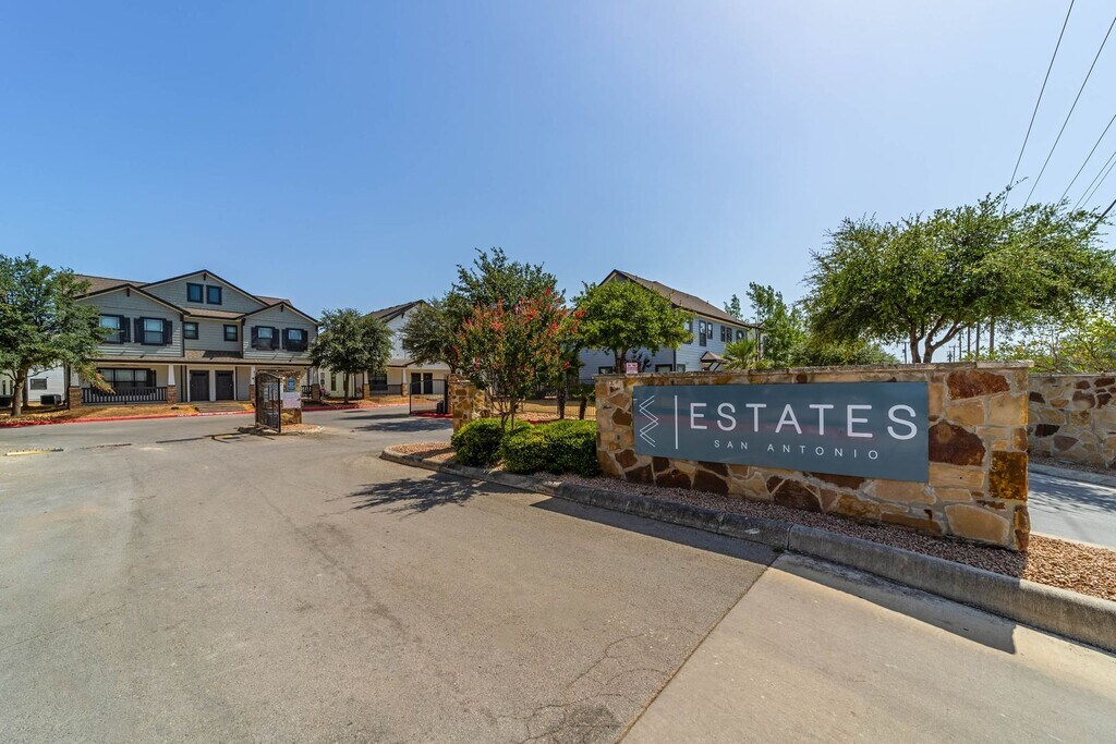 Ubicado entre dos diferentes autopistas interestatales y varios parques naturales, The Estates at San Antonio cuenta con una excelente ubicación que apoya un estilo de vida activo. Elige entre planos de planta de concepto abierto recientemente renovados de 2, 3 y 4 habitaciones, cada uno con habitaciones/baños privados (y un baño auxiliar en la planta baja para los invitados). En Estates, disfrutarás de un amplio espacio para la soledad y la relajación, así como espacio para disfrutar de un momento con la familia y los amigos. Los planos de planta cuentan con elegantes pisos de concreto teñido en la planta baja, lujosas alfombras en la planta superior o pisos de tablones de madera recientemente renovados, cocinas gourmet con encimeras de azulejos de granito, amplio espacio de almacenaje, terrazas y patios, cuarto de servicio/lavadero con lavadora y secadora grandes, armarios espaciosos, ventiladores de techo en las habitaciones, lámparas modernas y más. Disfrutarás de pasar tiempo junto a la piscina estilo centro turístico y spa, jugar pickleball o hacer ejercicio en el recientemente remodelado gimnasio disponible las 24 horas. Las posibilidades en Estates son infinitas y la elección es tuya. ¡Programa un recorrido y asegura tu lugar hoy mismo! Revolución de la vida moderna The Estates at San Antonio ofrece un ambiente sin preocupaciones con comodidades de primera clase y un personal amable, ofrecemos las mejores viviendas de lujo diseñadas para las personas ocupadas de hoy. Convenientemente ubicado cerca de la I-10 y 1604, no hay mejor lugar para llamar hogar. Estates at San Antonio es un complejo ubicado en el condado de Bexar, dentro del área del código postal 78249. Está ubicado dentro de la zona de asistencia del distrito escolar independiente de Northside (NISD).