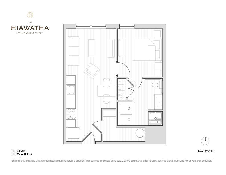 Fecha Disponibilidad Unidad Pies² Llamar para disponibilidad Hiawatha 1BD Plan H 615 pies² Características y Comodidades de Modelo
