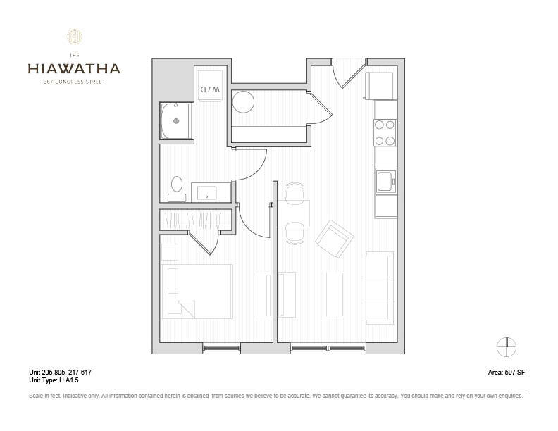 Fecha Disponibilidad Unidad Pies² Llamar para disponibilidad Hiawatha 1BD Plan E 597 pies² Características y Comodidades de Modelo