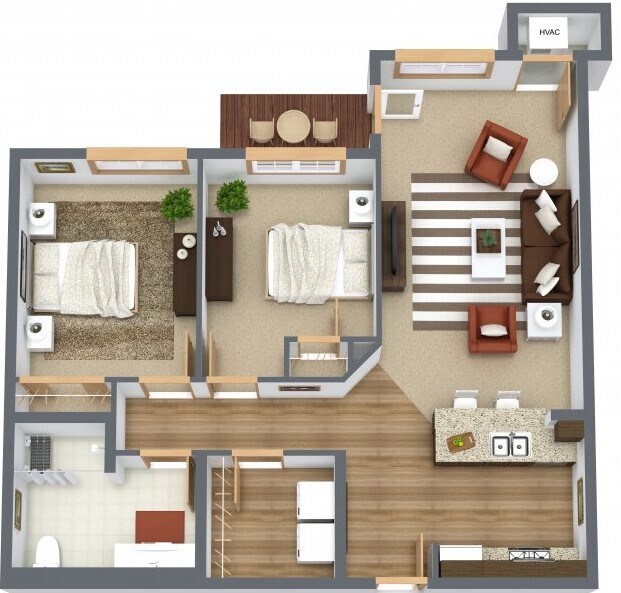 Modelo de apartamento: 2 Bedroom/1 Bath Apartment HC$1,5452 Dormitorios, 1 Baño, 970 sq ftDisponible Ahora![]()