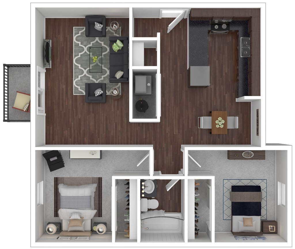 2 Dormitorios, 1 Baño, 903 pies²Galería del Modelo