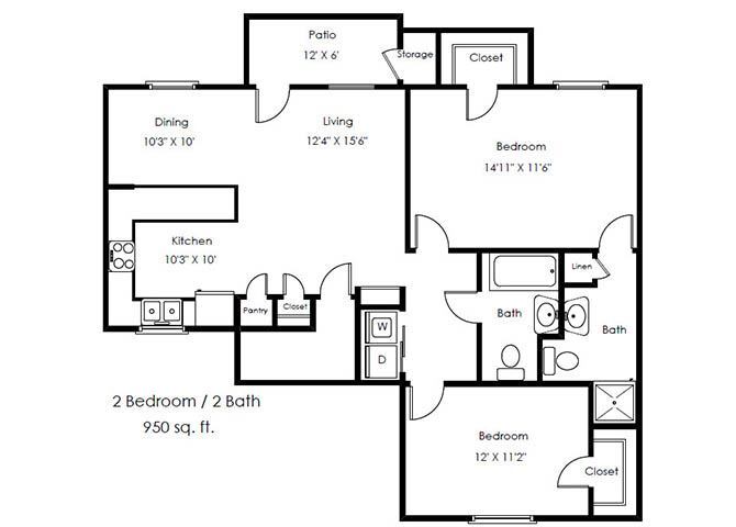 Modelo de apartamento: Two Bedroom2 Dormitorios, 2 Baños, 950 sq ftDisponible AhoraTwo Bedroom - Plano 1 Unidad de apartamento: 16105Modelo de apartamento: Two Bedroom2 Dormitorios, 2 Baños, 950 sq ftDisponible Ahora