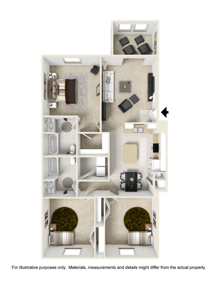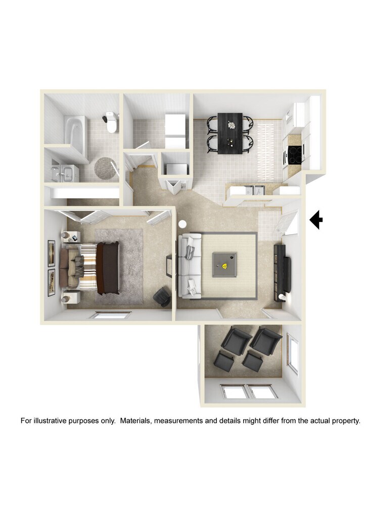 Modelo de apartamento: 1 bdrm/1 bath$8661 Dormitorio, 1 Baño, 771 sq ftDisponible January 9, 2026![]()