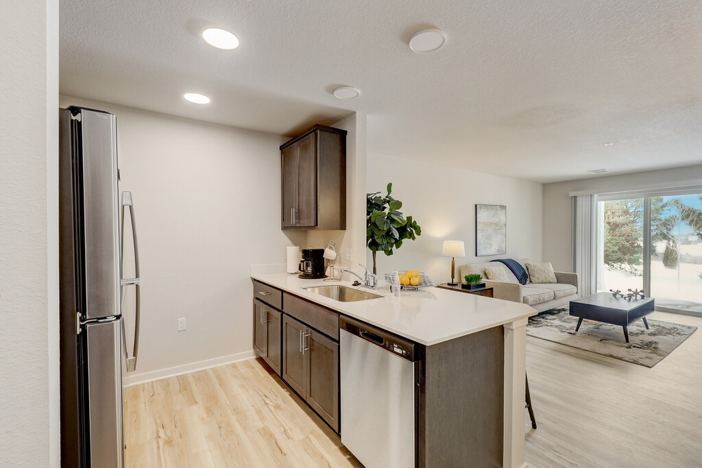 Dos edificios en Hidden Hills Apartments cuentan con apartamentos de uno y dos dormitorios. Todas las unidades incluyen una cocina con bar de refrigerios y despensa, comedor, sala de reuniones y lavadora y secadora grandes en la unidad. Algunas unidades también ofrecen una oficina en casa. Otras características incluyen pisos LVP y encimeras de cuarzo en la cocina. Cada residencia Hidden Hills Townhomes cuenta con una cocina gourmet con abundantes gabinetes, encimeras de granito, una isla con bar de refrigerios incorporado, despensa, electrodomésticos de acero inoxidable y lujosos pisos de vinilo en todo el primer piso. Otras características de lujo incluyen amplios dormitorios con mucho espacio de almacenamiento, lavadora y secadora en la unidad, garaje privado para dos automóviles y sótano completo.