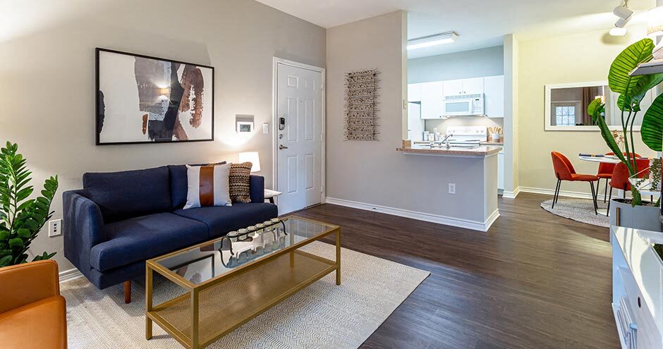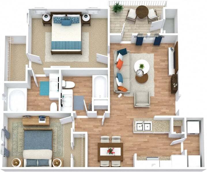 Modelo de apartamento: RiverwalkDesde $9151 Dormitorio, 1 Baño, 689 sq ftDisponible Ahora![]()