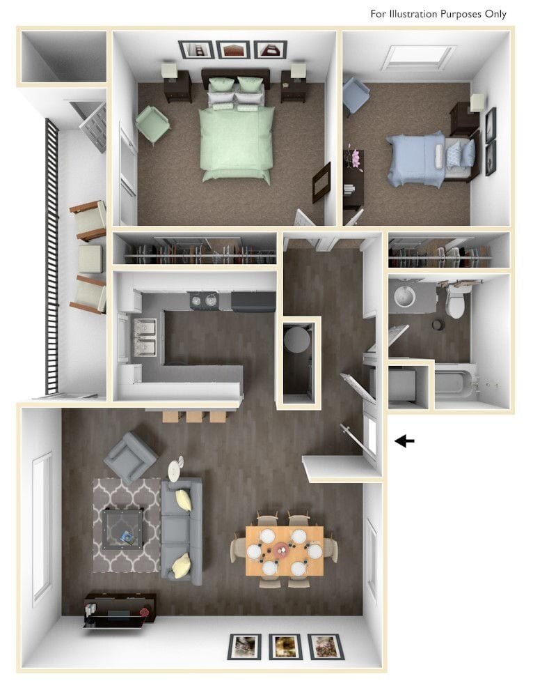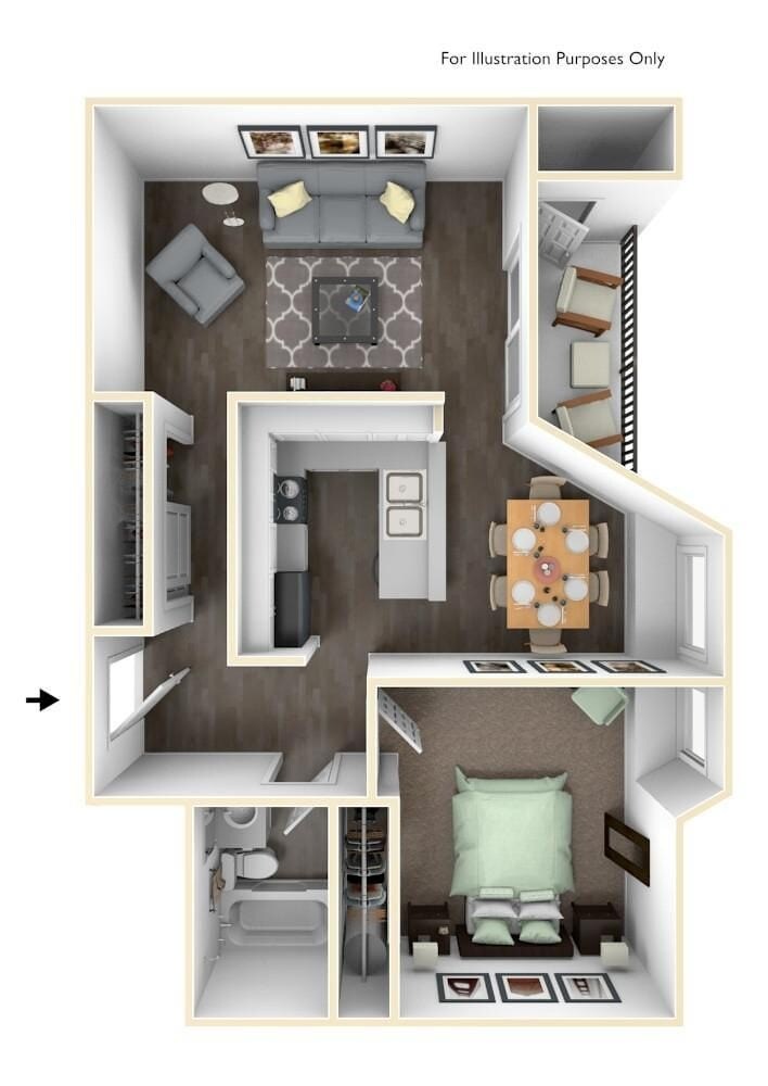 Modelo de apartamento: TillamookDesde $1,3001 Dormitorio, 1 Baño, 795 sq ftDisponible Ahora![]()