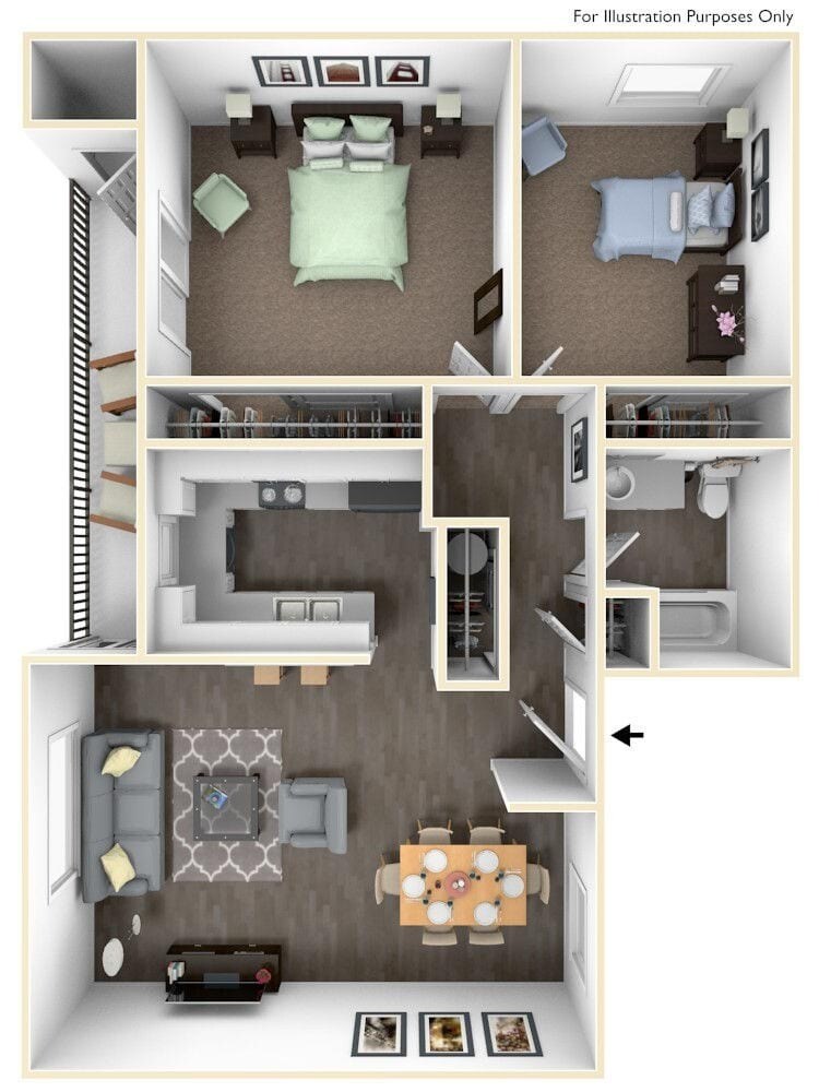 1 Dormitorio, 1 Baño, 795 pies²Disponible AhoraGalería del Modelo