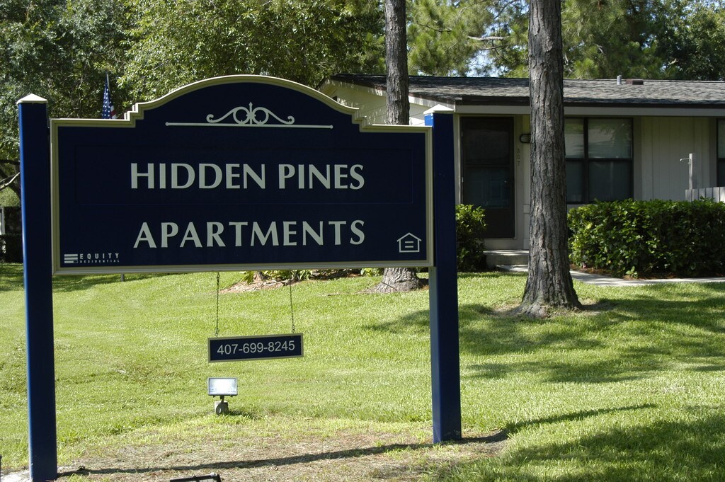 Hidden Pines es de un solo piso, de la villa complejo de apartamentos que ofrece apartamentos de 1 y 2 habitaciones. Las villas de una planta cuentan con un patio privados, conexiones para lavadora/ secadora y espacio de almacenamiento adicional. El terreno con hermosos paisajes tranquilo que ofrece a los residentes una, ambiente tranquilo. Hidden Pines está ubicado en de Casselberry, Florida, a minutos de 17/92, la autopista interestatal I-4, y Maitland.