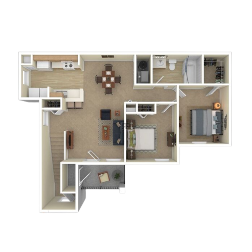 Modelo de apartamento: The Brookside2 Dormitorios, 1 Baño, 1021 sq ftDisponible Ahora![]()