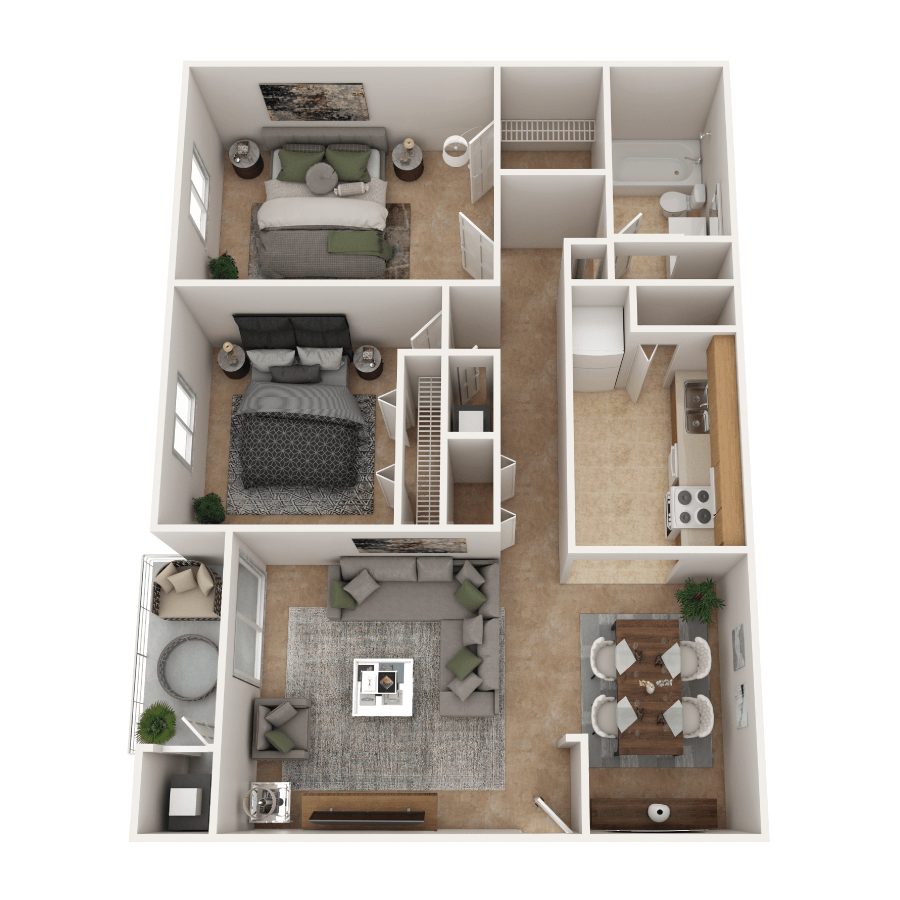 2 Dormitorios, 1 Baño, 974 pies²Disponible AhoraGalería del Modelo
