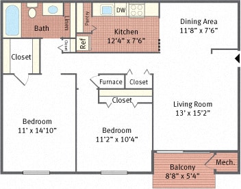 Modelo de apartamento: Two BedroomDesde $1,4552 Dormitorios, 1 Baño, 974 sq ftDisponible Ahora![]()
