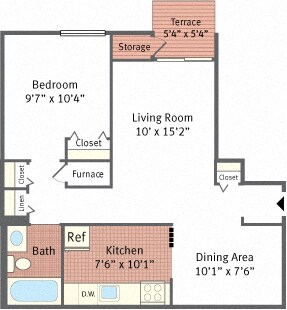 Modelo de apartamento: One Bedroom JrDesde $1,3451 Dormitorio, 1 Baño, 607 sq ftNo Disponible![]()