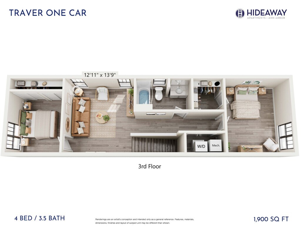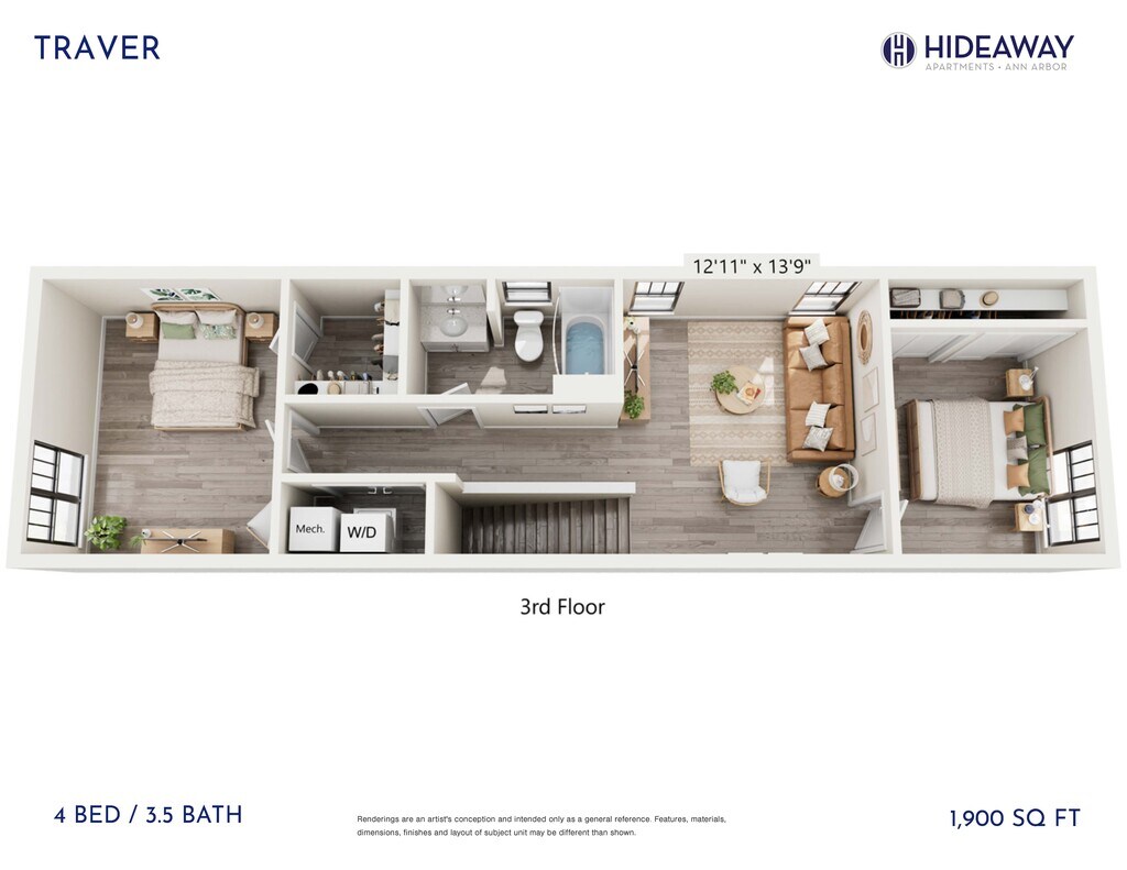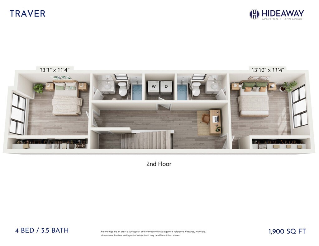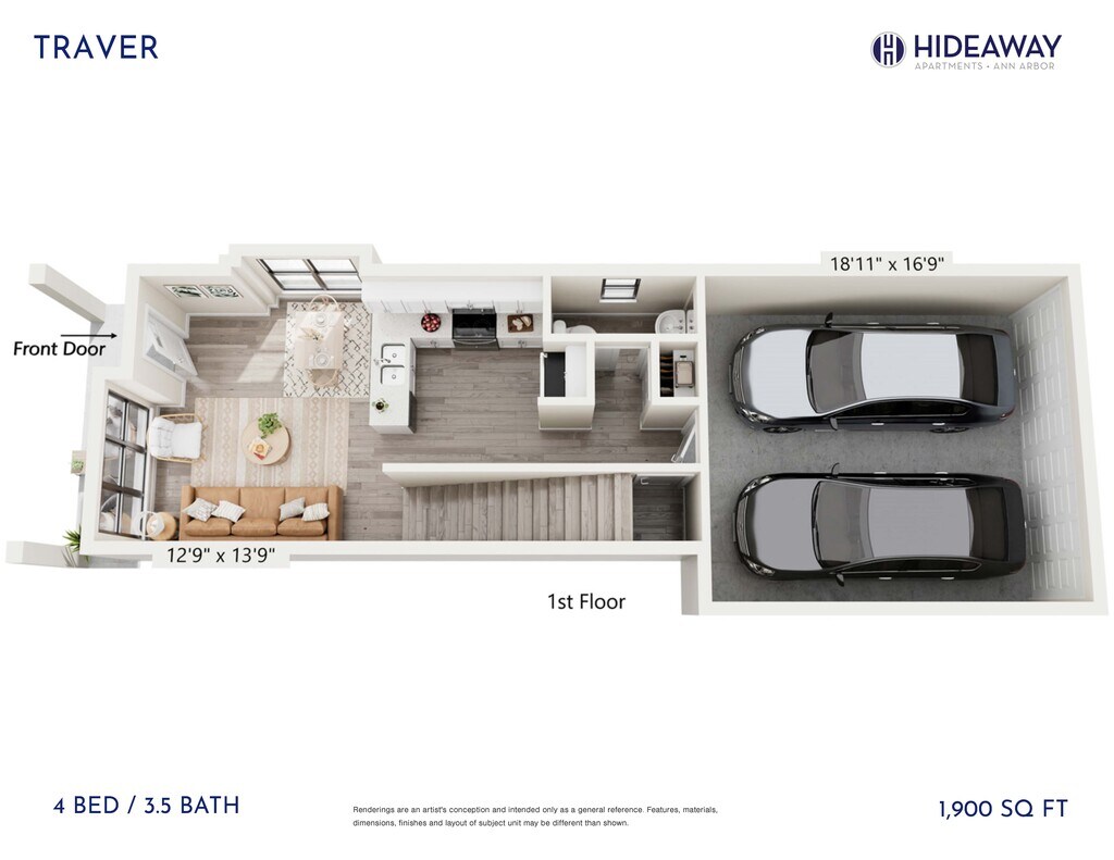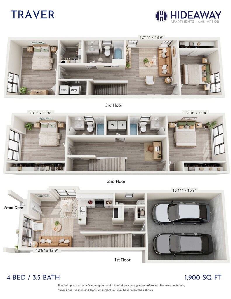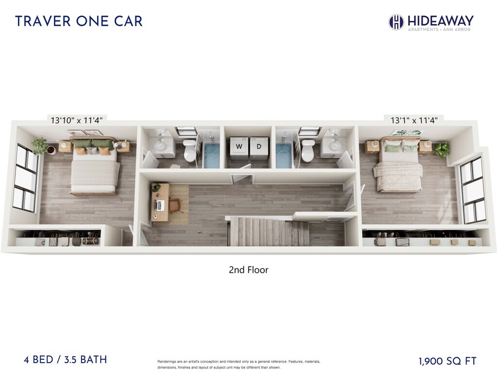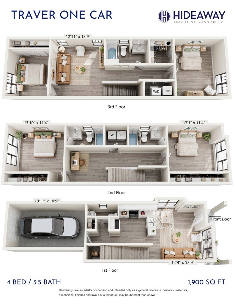 Modelo de apartamento: Traver w/ One Car Garage$2,6954 Dormitorios, 3.5 Baños, 1900 sq ftNo DisponiblePlanosFotos![]()