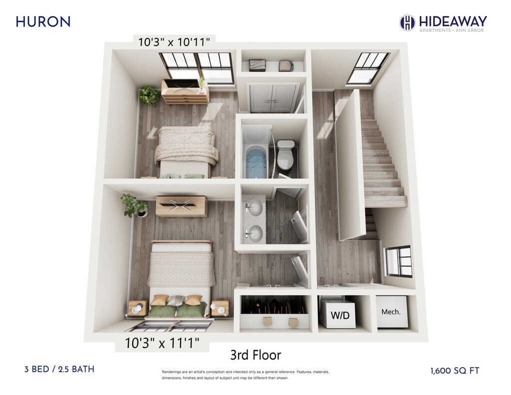 Modelo de apartamento: The Huron$2,3953 Dormitorios, 2.5 Baños, 1600 sq ftNo DisponiblePlanosFotos![]()
