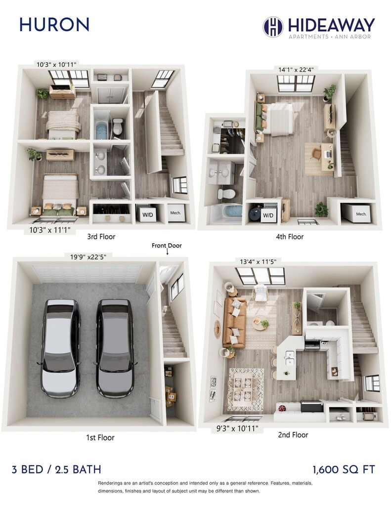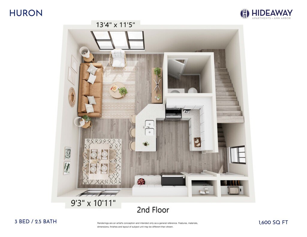 Precio Fecha Disponibilidad Unidad Pies² $2,395 Llamar para disponibilidad The Huron 1600 pies² Características y Comodidades de Modelo