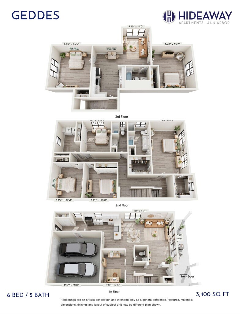 Llámenos hoy para conocer las opciones de precio de 3 dormitorios a 6 dormitorios en Hideaway Apartments