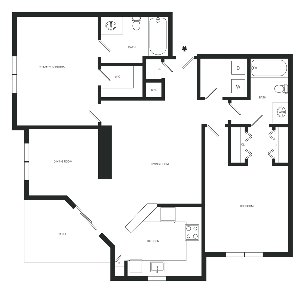 1 Dormitorio, 2 Baños, 935 pies²Disponible AhoraGalería del Modelo