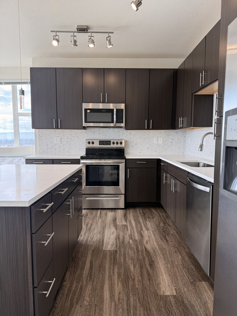 Ven a visitarnos hoy mismo y disfruta de todo lo que tenemos para ofrecer en High Line Pointe Apartments. Denver, Colorado, es el hogar de este nuevo complejo de lujo que está rodeado de vistas de las majestuosas montañas, el horizonte del centro de la ciudad y el parque High Line Canal. Los interiores elegantes y los espacios sociales al aire libre, como nuestra impresionante casa club y la hermosa piscina y cabañas, están diseñados para enriquecer las vidas de los residentes y brindar el lugar perfecto para relajarte. Como residente, podrás disfrutar de la verdadera comodidad de disponer de un pasillo interior, elevador y estacionamiento estructurado. Nuestros amplios y exclusivos apartamentos de una y dos habitaciones tienen modernos diseños con toques de lujo, como electrodomésticos de acero inoxidable y encimeras de cuarzo. Disfruta de una imponente vista de la ciudad de Denver desde tu propio balcón extra grande cuando conviertas en uno de los primeros en llamar a High Line Pointe Apartments tu hogar.