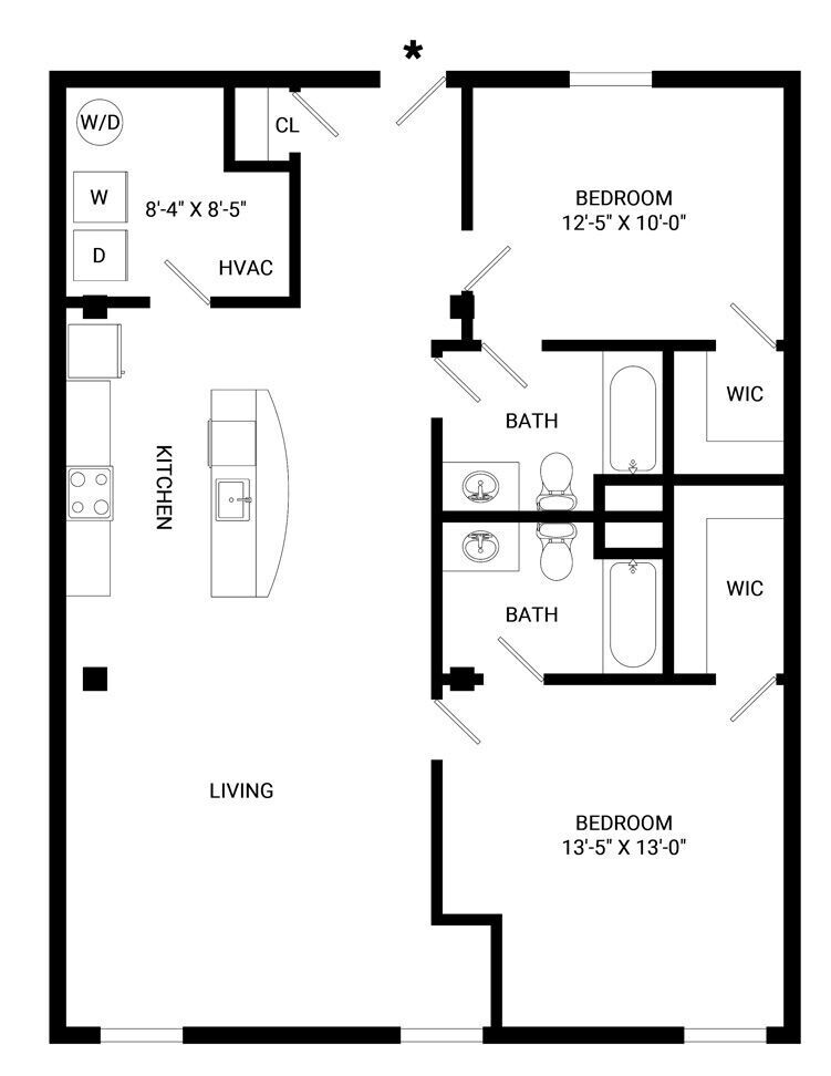 Unidad de apartamento: 107Modelo de apartamento: 2 x 2 - Imagine$1,7422 Dormitorios, 2 Baños, 1230 sq ftDisponible Ahora