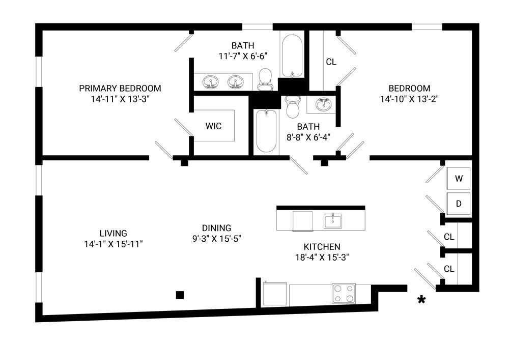 Modelo de apartamento: 2 x 2 - FigureDesde $1,5002 Dormitorios, 2 Baños, 1031 sq ftDisponible Ahora![]()