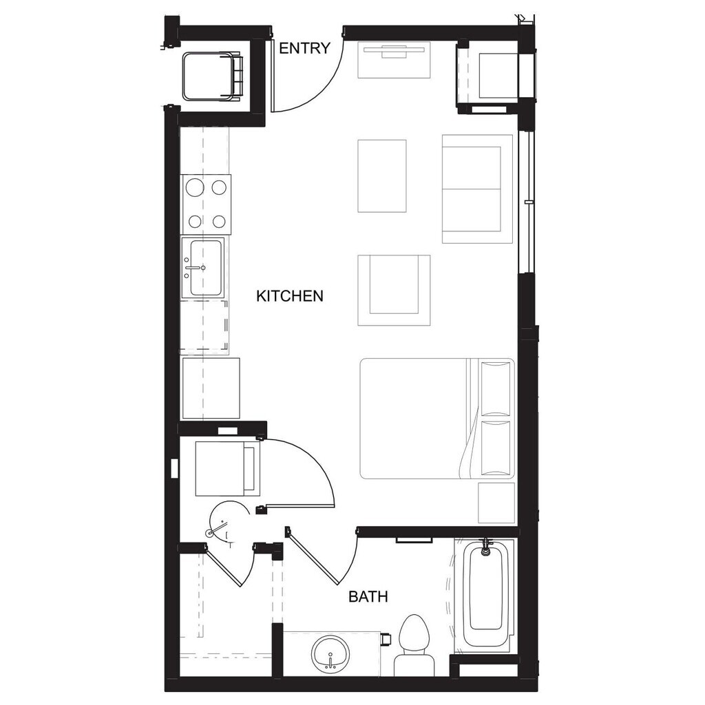 Estudio, 1 Baño, 430 pies²Galería del Modelo