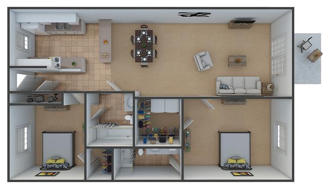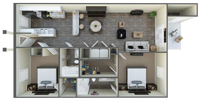2 Dormitorios, 2 Baños, 1236 pies²El más grandeEsta opción tiene las unidades más grandes para este modeloGalería del Modelo
