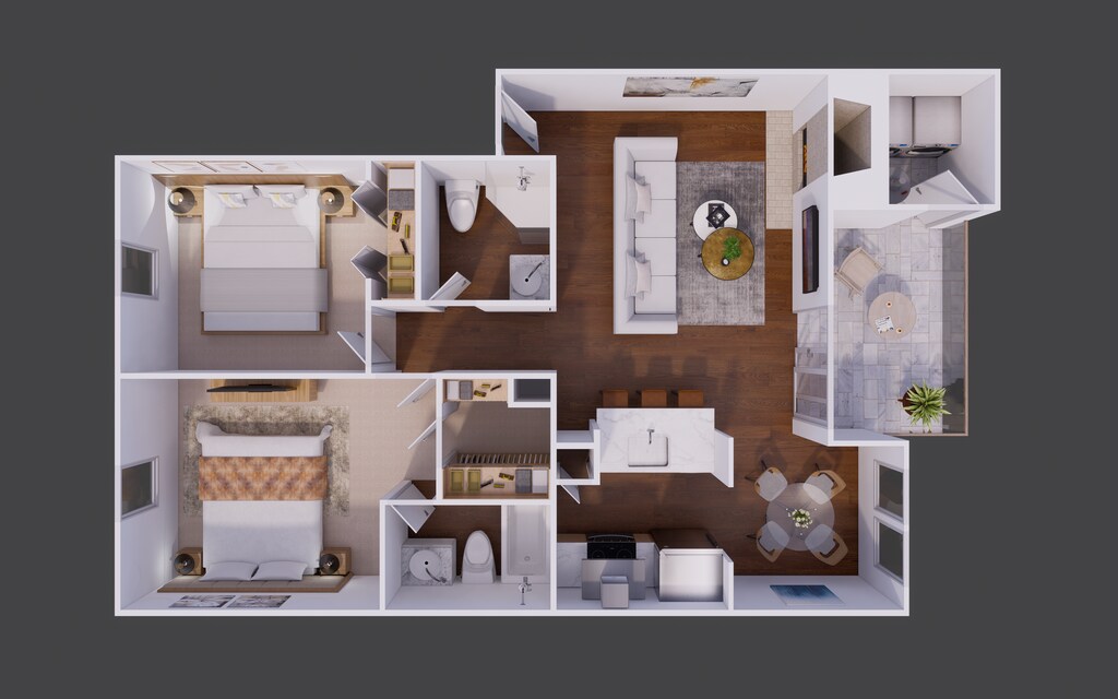 Modelo de apartamento: B1Desde $1,2452 Dormitorios, 2 Baños, 836 sq ftNo Disponible![]()
