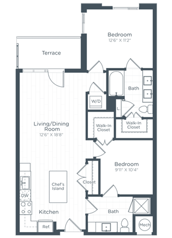 Modelo de apartamento: AD1Desde $2,2941 Dormitorio, 1 Baño, 770 sq ftDisponible Ahora![]()