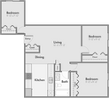 2 Dormitorios, 1 Baño, 705 pies²Disponible AhoraGalería del Modelo