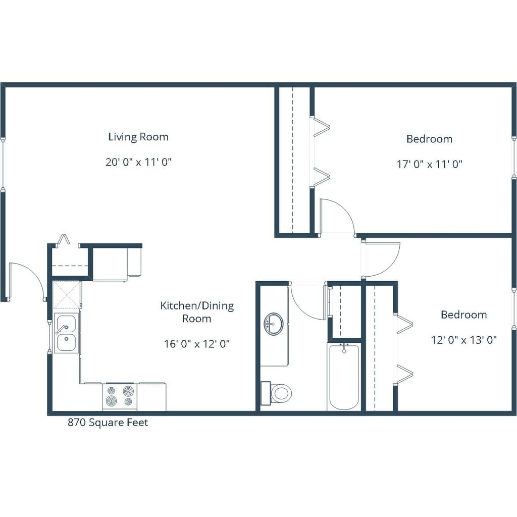 2 Dormitorios, 1 Baño, 870 pies²Galería del Modelo