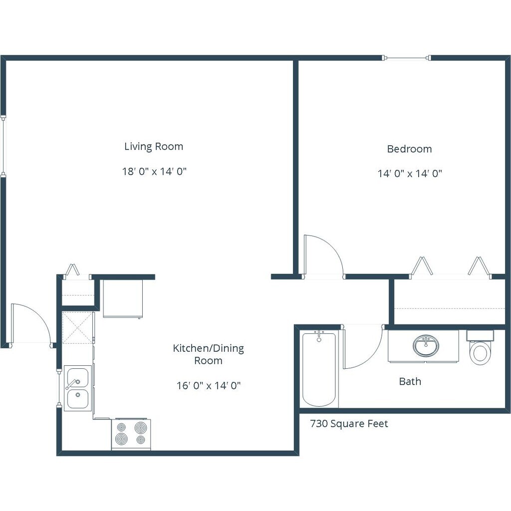 1 Dormitorio, 1 Baño, 715 pies²El más grandeEsta opción tiene las unidades más grandes para este modeloGalería del Modelo