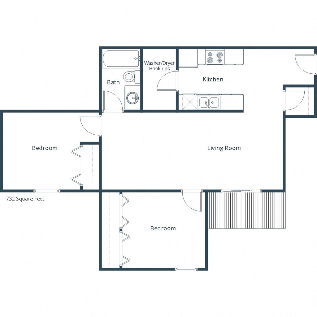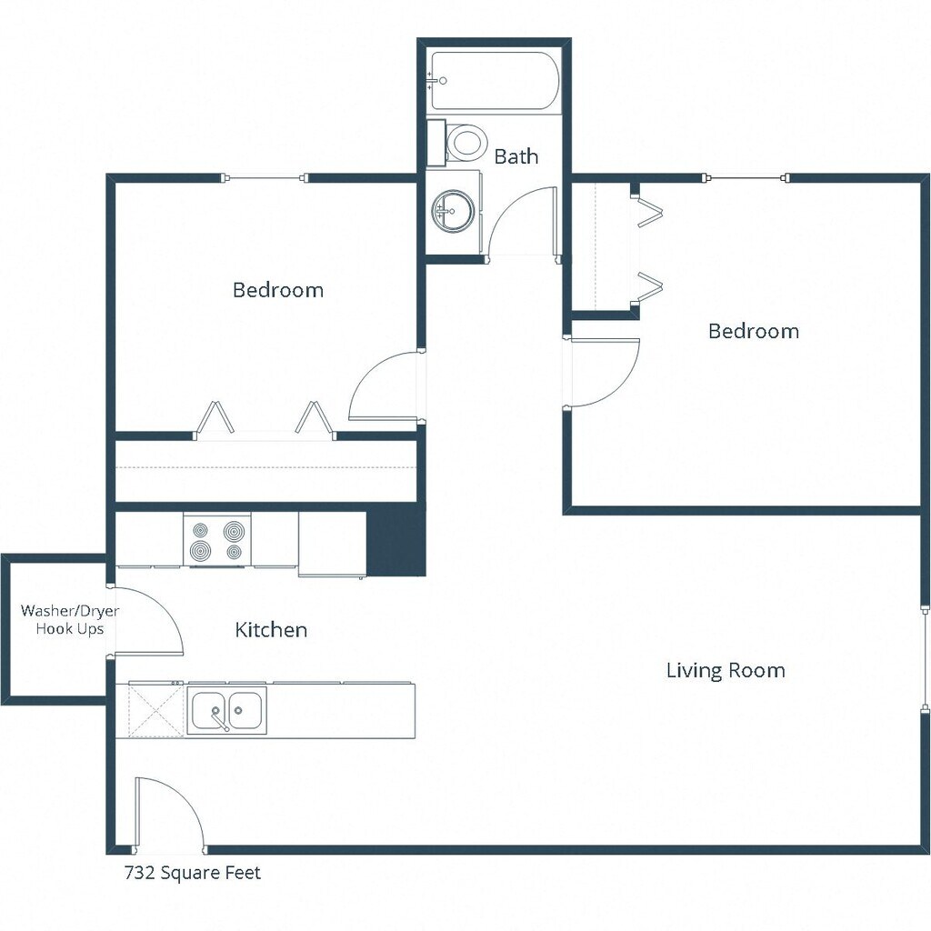 2 Dormitorios, 1 Baño, 732 pies²Galería del Modelo