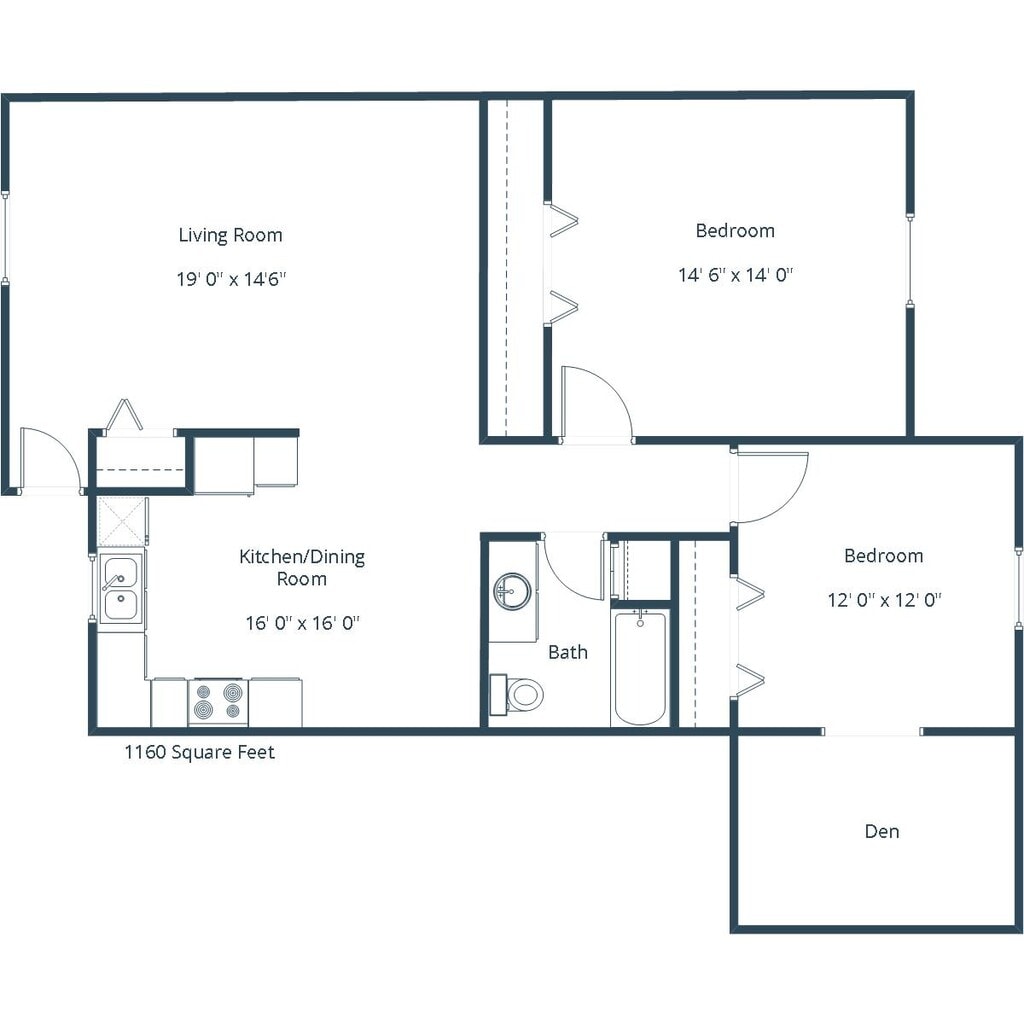 2 Dormitorios, 1 Baño, 1026 pies²El más grandeEsta opción tiene las unidades más grandes para este modeloGalería del Modelo