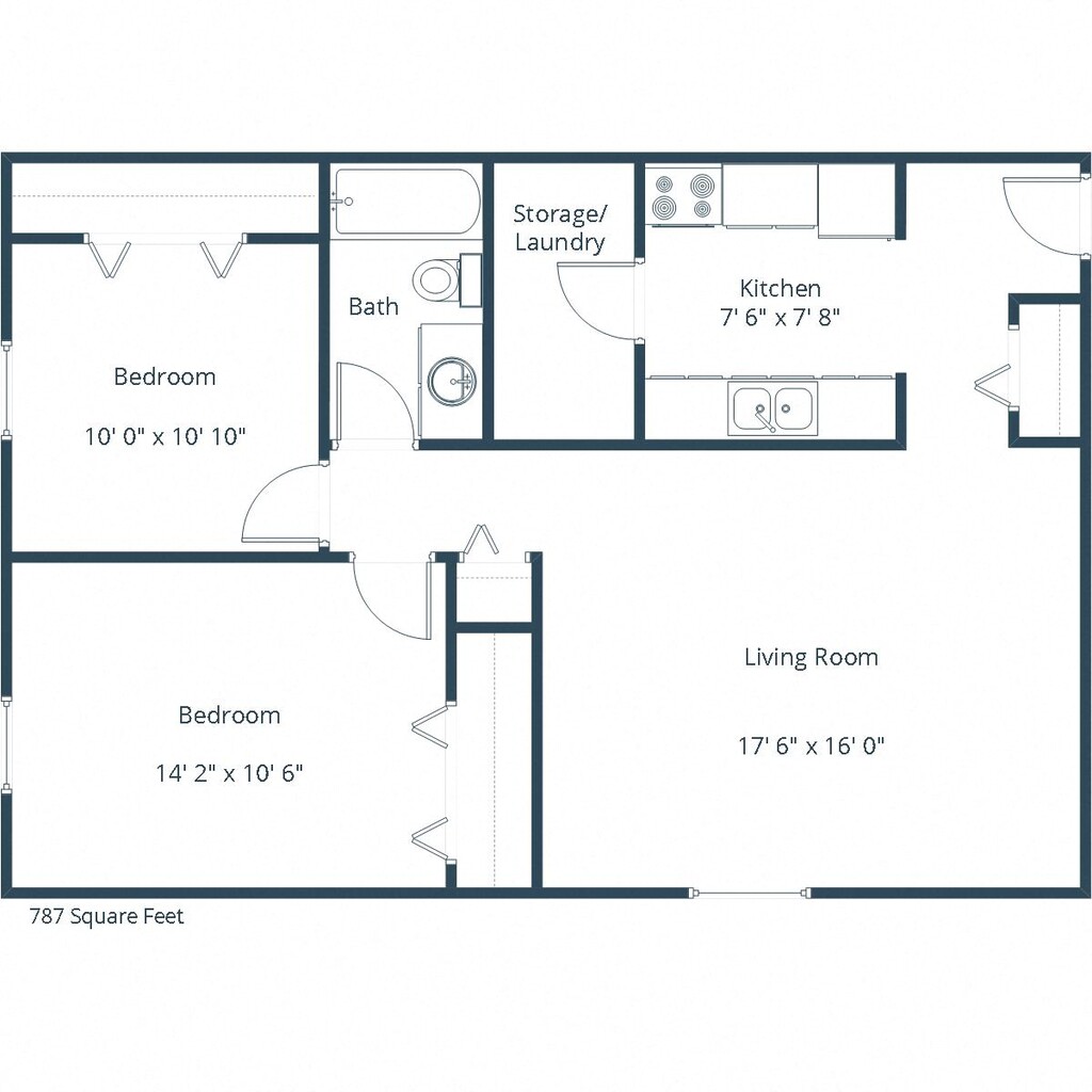 2 Dormitorios, 1 Baño, 787 pies²Galería del Modelo