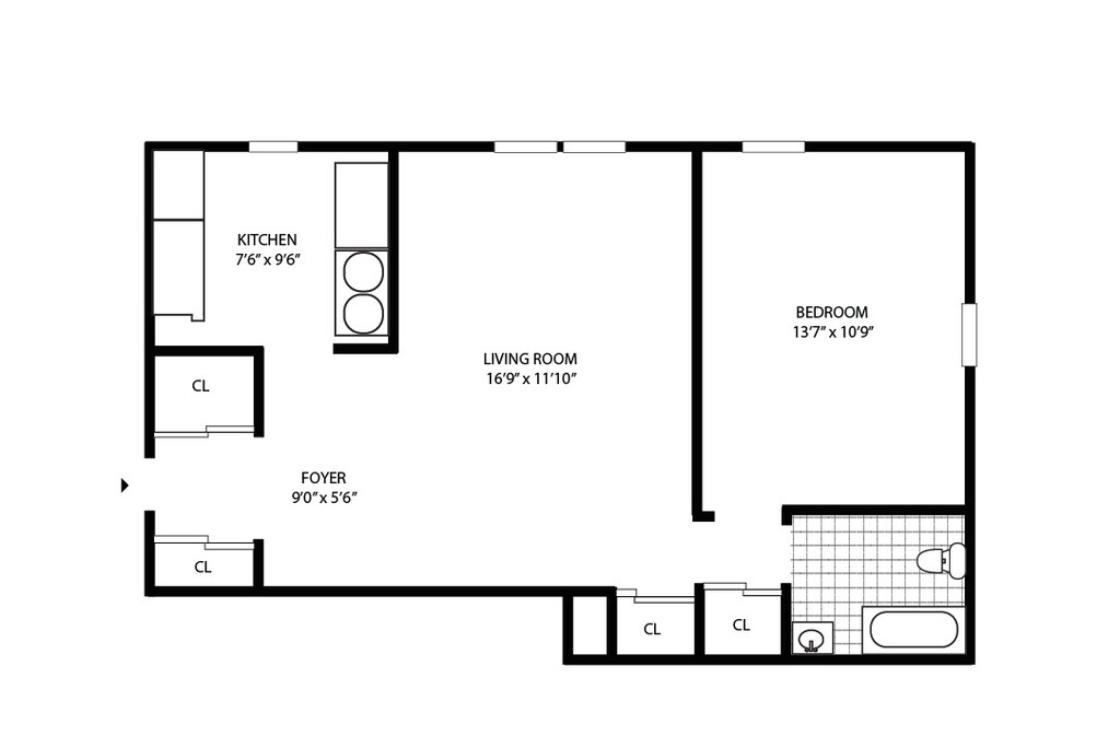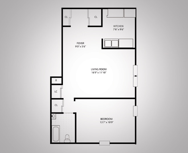 1 Dormitorio, 1 Baño, 500 pies²Disponible Dec 5Galería del Modelo
