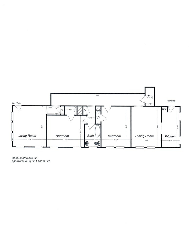 2 Dormitorios, 1 Baño, 1100 pies²Galería del Modelo