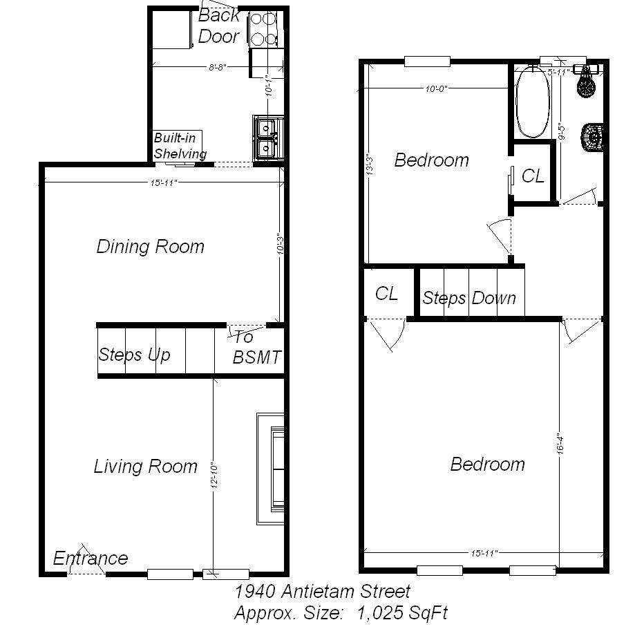 2 Dormitorios, 1 Baño, 1025 pies²Galería del Modelo