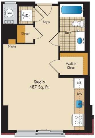 Estudio, 1 Baño, 487 pies²Galería del Modelo