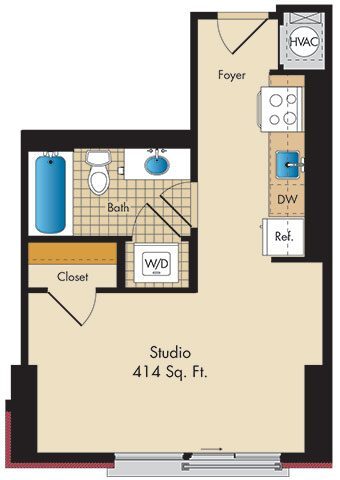 Estudio, 1 Baño, 414 pies²Galería del Modelo