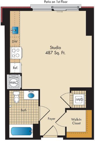 Modelo de apartamento: S4Llame para PreciosEstudio, 1 Baño, 487 sq ftNo DisponibleS4 - Plano 1 Plano: S6