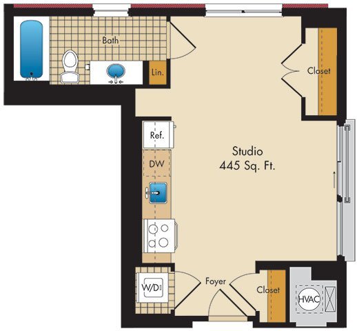 Estudio, 1 Baño, 445 pies²Galería del Modelo