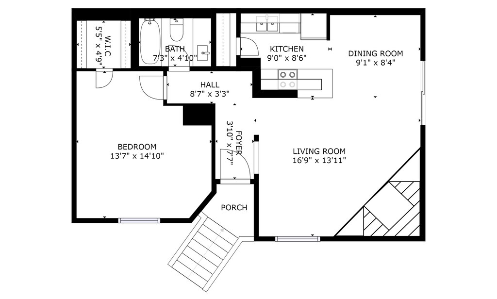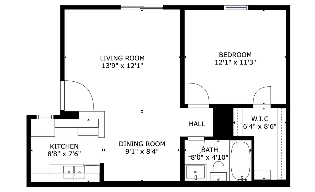 1 Dormitorio, 1 Baño, 479 pies²Disponible AhoraGalería del Modelo