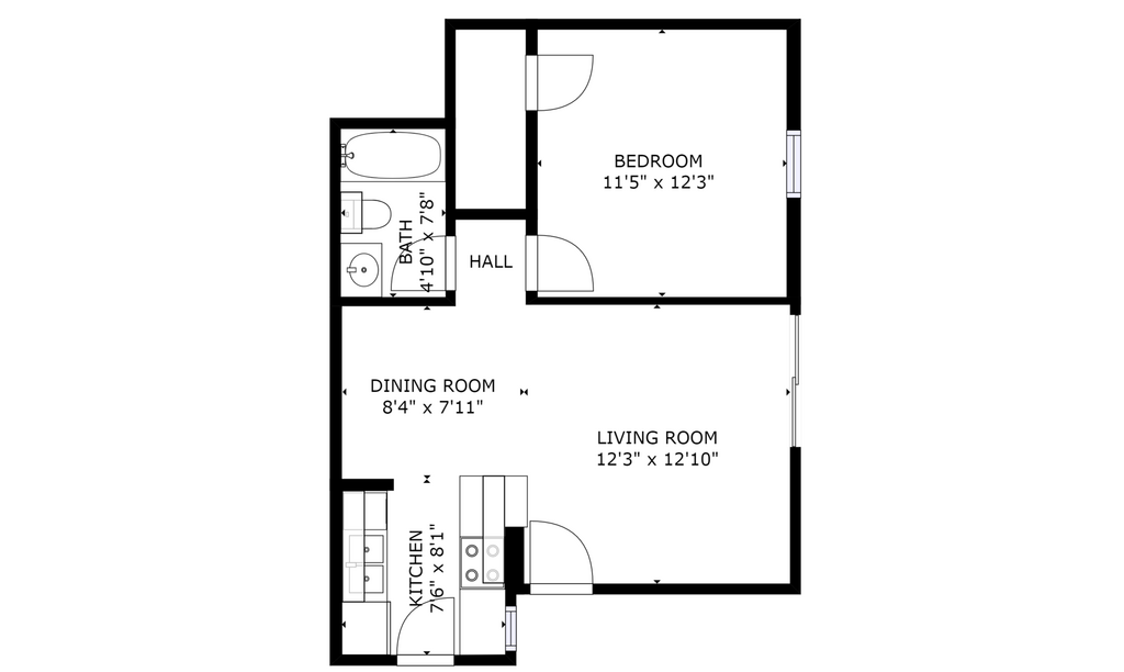 Modelo de apartamento: A1Desde $7051 Dormitorio, 1 Baño, 479 sq ftDisponible Ahora![]()