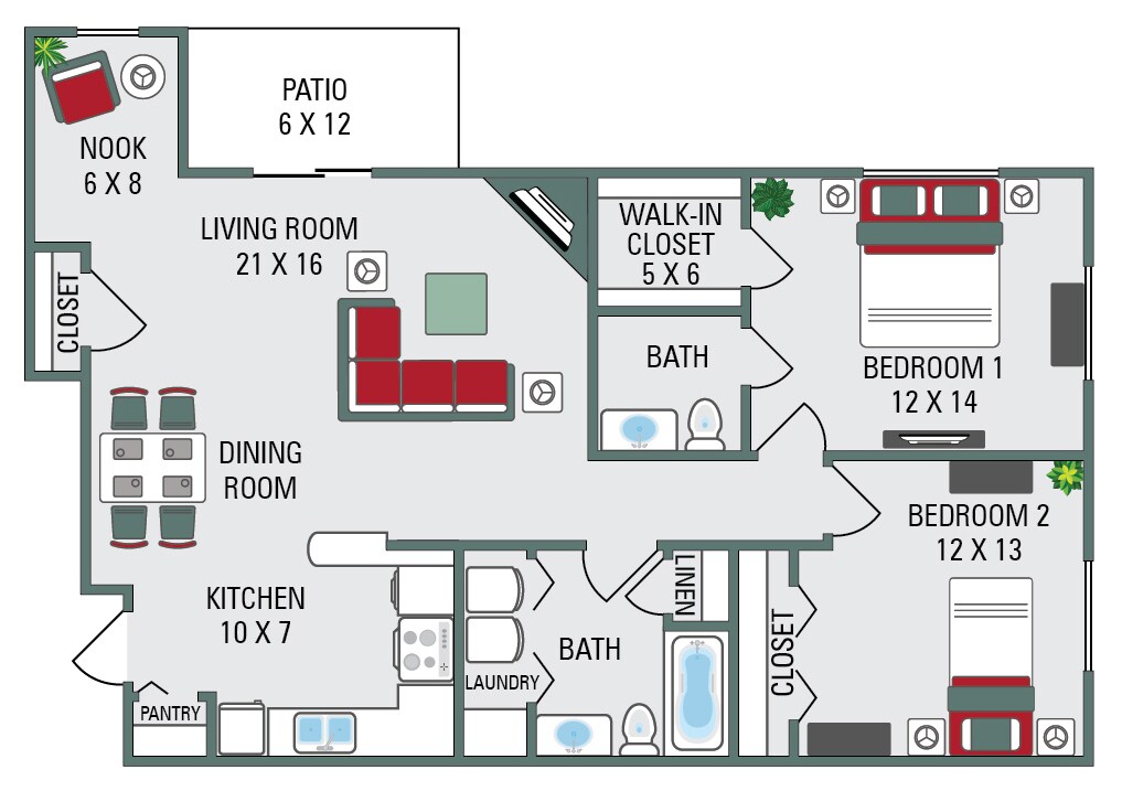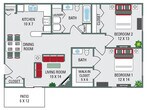 Modelo de apartamento: The Breckenridge - 1260 SqftDesde $1,2902 Dormitorios, 2 Baños, 1260 sq ftNo DisponibleThe Breckenridge - 1260 Sqft - Plano 1