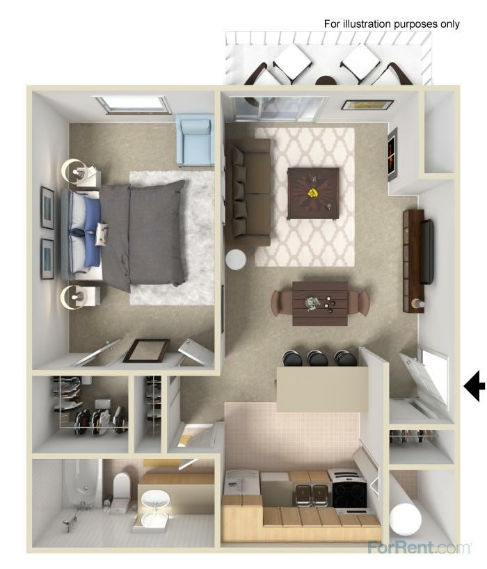 1 Dormitorio, 1 Baño, 610 pies²Disponible AhoraGalería del Modelo
