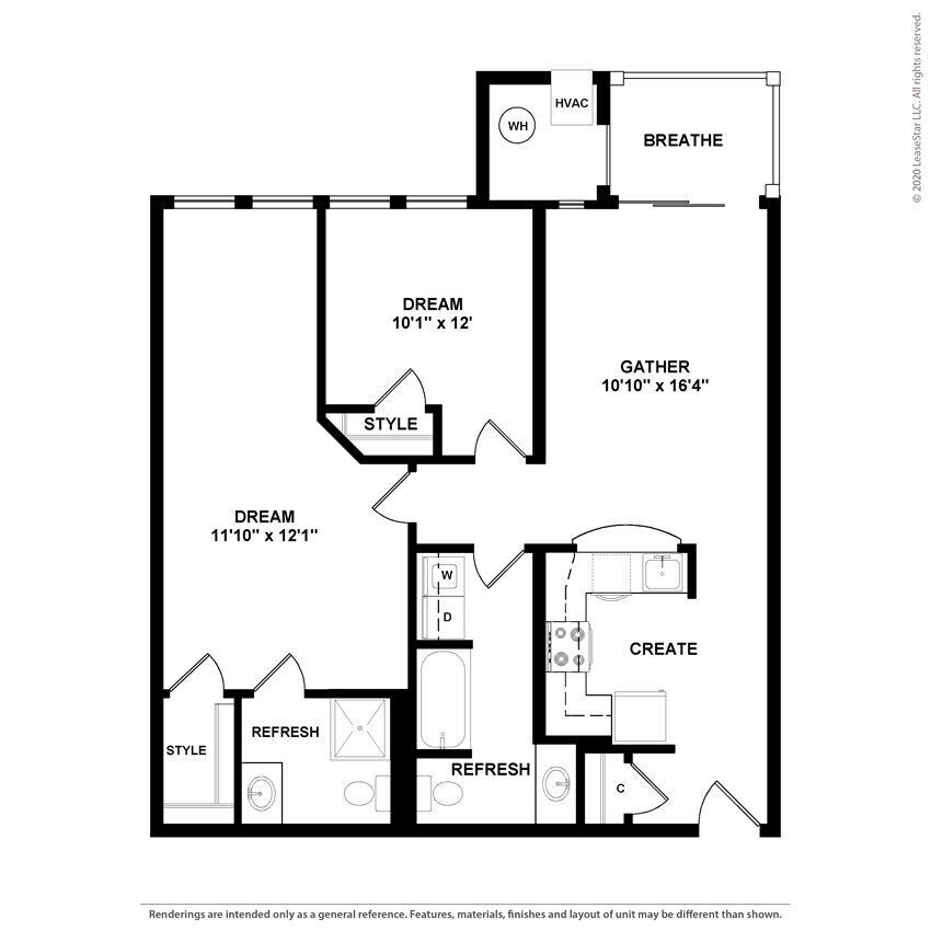 C1 - Plano 2 Los planos de la planta son una interpretación artística. Todas las dimensiones son aproximadas. Los tamaños o el detalle del producto real y sus especificaciones pueden variar. No todas las características están disponibles en todos los hogares para rentar. Los precios y la disponibilidad están sujetos a cambios. El alquiler que se muestra es mensual. Se pueden aplicar ciertos cargos, por ejemplo, entrega de paquetes, recolección de basura, agua, servicios, etc. Depositos varian. Consulta a un representante para conocer detalles.