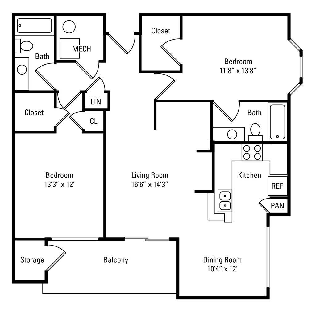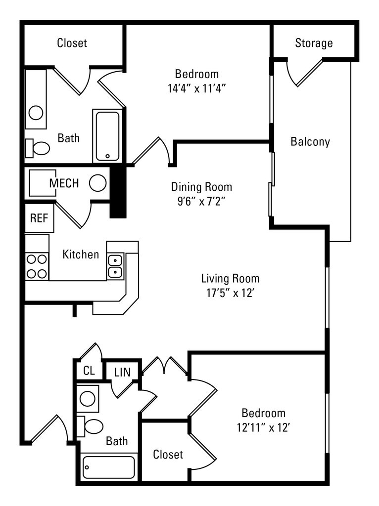 Modelo de apartamento: Two Bedroom 1.5 Bath- 901 sqftDesde $1,5152 Dormitorios, 1.5 Baños, 901 sq ftDisponible Ahora![]()