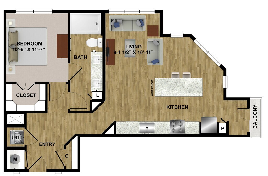 1 Dormitorio, 1 Baño, 713 pies²Disponible Oct 8Galería del Modelo
